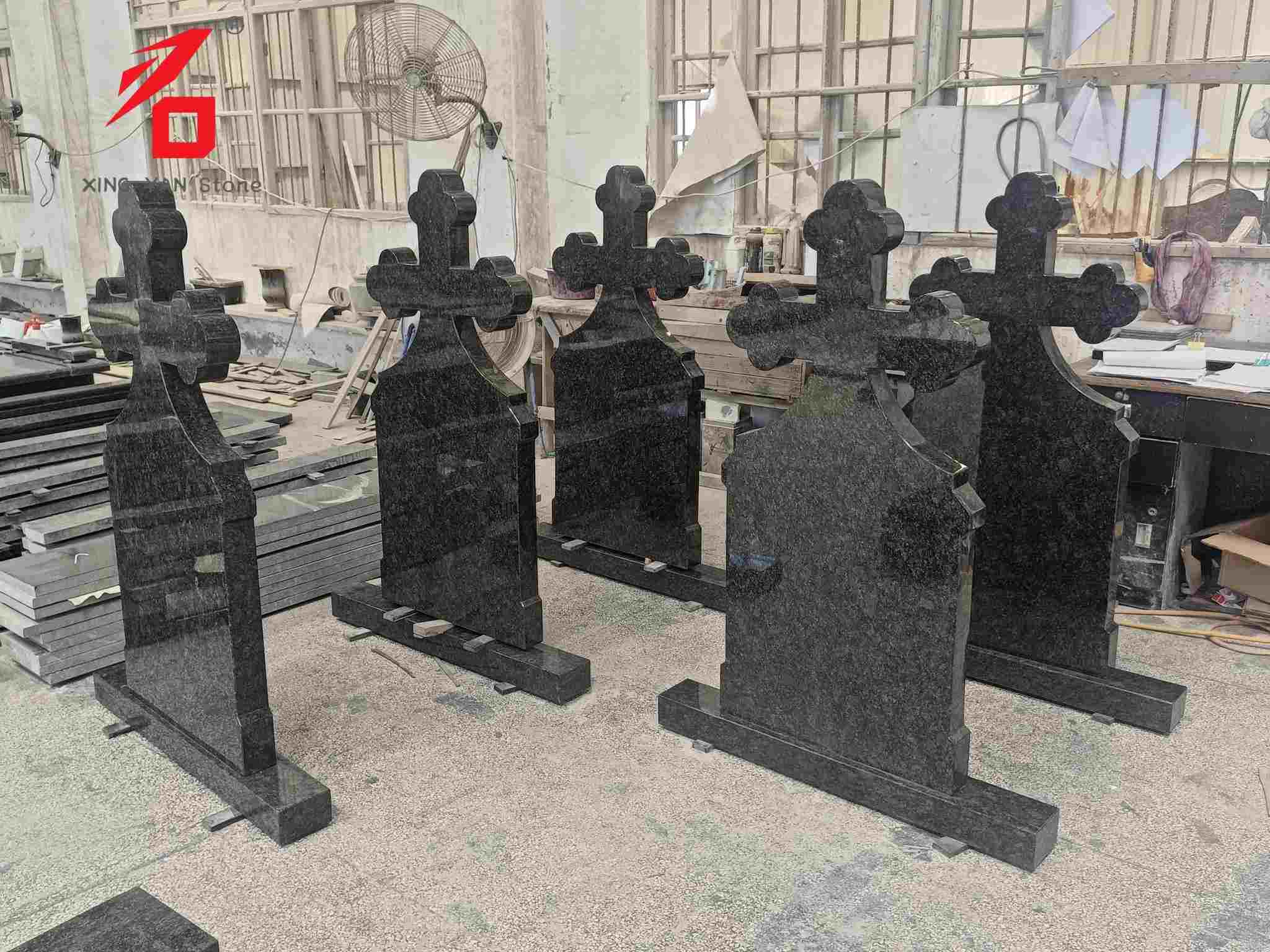 Υλικό: Επιλέγεται μαύρος γρανίτης υψηλής πυκνότητας, με ιδιότητες πυκνής και σκληρής πέτρας, ανθεκτικό στις καιρικές συνθήκες και ανθεκτικό στη διάβρωση. Η επιφάνεια υφίσταται λεπτή επεξεργασία γυαλίσματος, προσφέροντας υψηλή γυαλάδα και ομοιόμορφη υφή. Σχεδιασμένο για μακροχρόνια τοποθέτηση σε εξωτερικό χώρο, αντιστέκεται στο ξεθώριασμα και την παραμόρφωση, διασφαλίζοντας την ανθεκτικότητα και την οπτική ακεραιότητα της ταφόπλακας.